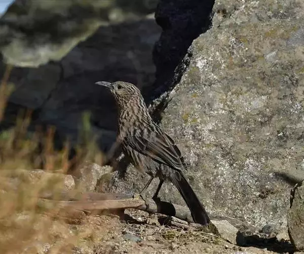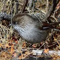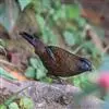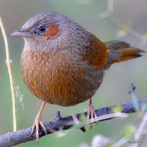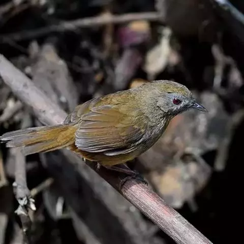 五六只成群,藏隐于干旱灌丛的稠密林下植被中,在落叶间翻拣觅食。鸣声为一连串颤抖的哨音而似鸫;叫声沙哑似喘息。