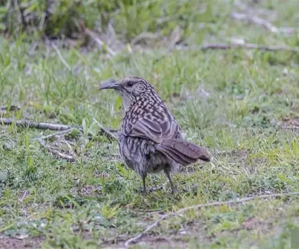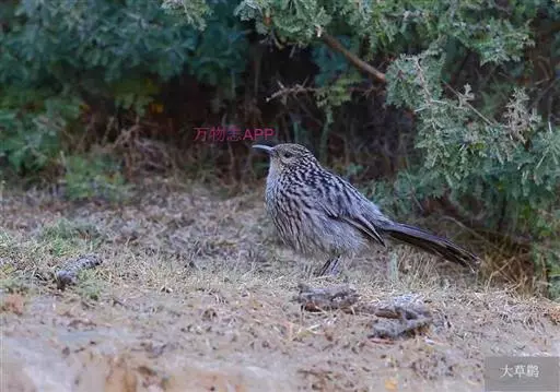 大草鹛(学名:Babax waddelli)中型鸟类,体长31~34厘米。上体灰色具粗著的黑褐色条纹,腰和尾上覆羽纵纹不明显。颊和耳羽灰色,髭纹由黑色点斑组成,其间杂有灰色。颏、喉和上胸灰色具细的黑色羽干纹,嘴较长而下曲。特征极明显,野外不难识别。