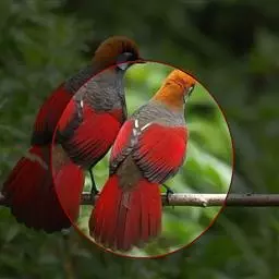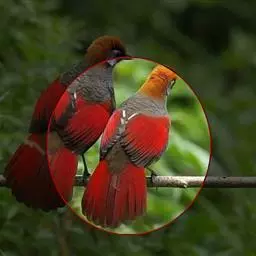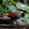 赤尾噪鹛中型鸟类,体长24~28厘米。头顶至后颈红棕色,两翅和尾鲜红色,眼先、眉纹、颊、颏和喉黑色,…
