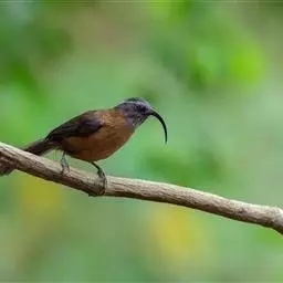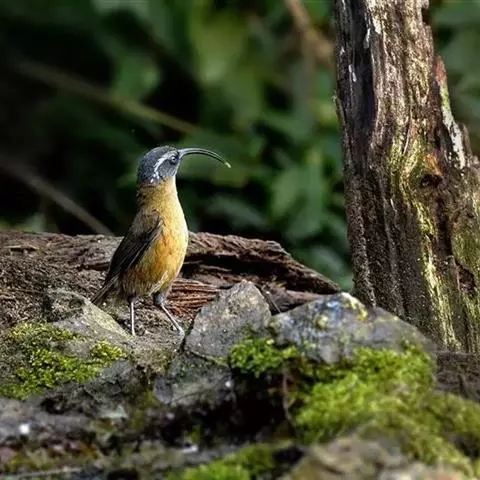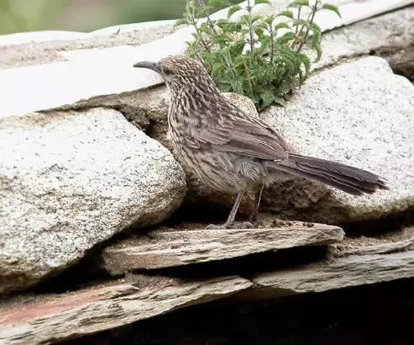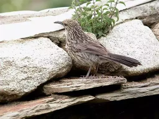 剑嘴鹛:中型鸟类,体长21-22厘米。嘴特别细长而向下弯曲,头顶和头侧烟灰色具长而窄的白色眉纹,…