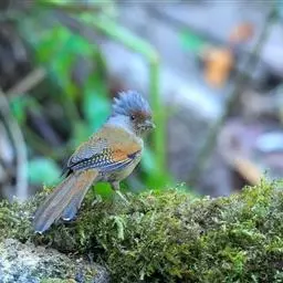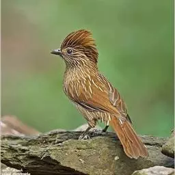 条纹噪鹛是画眉科、噪鹛属中型鸟类,体长28-32厘米。头具短的羽冠,上体栗褐色,飞羽外翻蓝灰色。…
