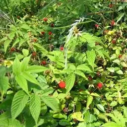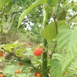 覆盆子为灌木,高1—2米;枝褐色或红褐色,幼时被绒毛状短柔毛,疏生皮刺。小叶3-7枚,长卵形或椭圆形,…
