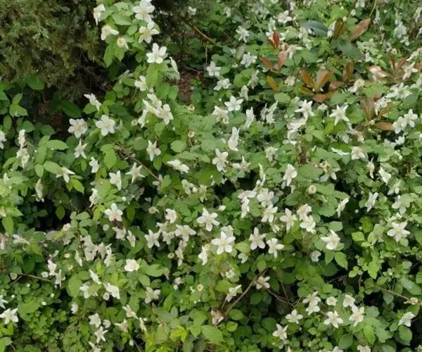 花常单生于侧枝顶端,也有腋生;花梗长(2)3-6厘米,具柔毛和腺毛,或有极少小皮刺;苞片小,线形,具柔毛;花大,直径3-4厘米;花萼外密被柔毛和腺毛;萼片卵状披针形或三角披针形,顶端长尾尖,外面边缘被灰白色绒毛,花后反折;花瓣倒卵形或近圆形,白色,基部具爪;花丝较宽;花柱和子房均无毛。