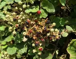 悬钩子栽植方式有单株栽植和带状栽植。单株栽植适用于宅旁零星空地栽植,以及分蘖力较弱的黑山莓,单株栽植行株距均为2米;带状栽植适用于大面积栽植,带状栽植的行距为1.5米,株距为0.8米,每亩定植穴555个。北方埋土防寒地区的行距为2.5米,株距为0.3米,每亩定植穴330个。无论是单株栽植还是带状栽植,为了早日形成繁茂的株丛,尽早达到丰产株丛密度,以每穴栽2-3株为宜。