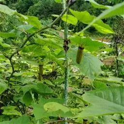 栽前要将 蓬蘽 苗木的根系在水中浸泡12-24小时,使根系吸足水分以利提高成活率。栽植的要求是深栽浅埋,深栽就是苗木的根系要距地面10-15厘米,浅埋就是在苗木周围30厘米以内,覆土时不要超过苗木原有的土印。深栽是因为每年新生的根状茎随着树龄增长而逐年上移,而下边的根系会逐年老化,为保证树体的正常生长,要深栽。浅埋的目的主要是为了缩短缓苗期,提高成活率。
