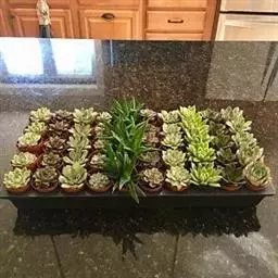 叶子表面宽厚,富肉质感且带有磨纱质感,看像石头质地;开红色小花,生于植株顶部,倒伞形密生,形状像花…