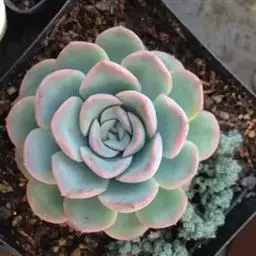 奥普琳娜为风车石莲属多肉植物,肉质叶互生,呈莲花状排列,整体颜色呈现粉粉的淡蓝色,叶缘和尖端容易泛红,…