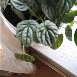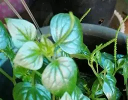 灰绿椒草 又名银叶椒草、银叶豆瓣绿。叶片近似圆形,长约6 厘米,叶色银绿或灰绿,叶脉凹陷,叶面有皱纹,叶缘呈轻微的波浪形,叶柄红色或红白相间。