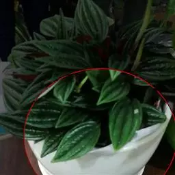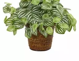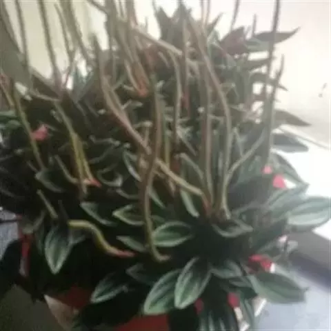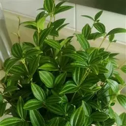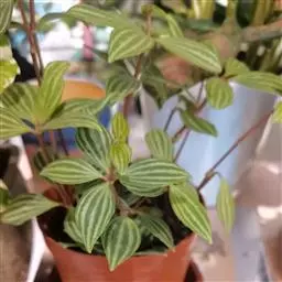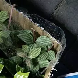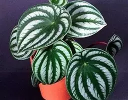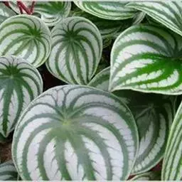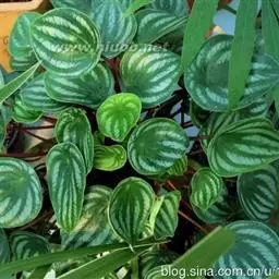 西瓜皮椒草 又称西瓜皮豆瓣绿、西瓜皮、银白斑椒草。植株无茎或具短茎,叶近基生,具红色长柄,叶片着生密集,盾形或倒卵形,厚实而光滑,半革质,叶面浓绿色,具半月形的银白色条纹。穗状花序,细小的花朵白色。