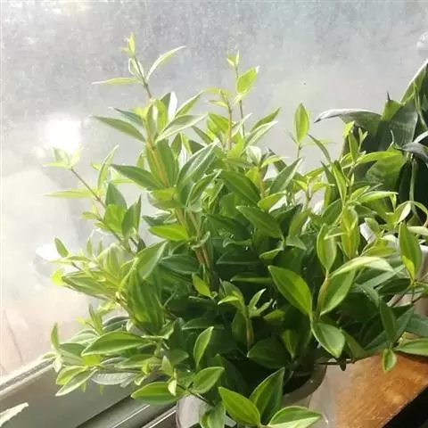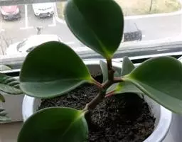 圆叶椒草(Peperomia obtusifolia)直立性植株,高约30 cm。单叶互生,叶椭圆形或倒卵形。叶端钝圆,叶基渐狭至楔形。叶面光滑有光泽,质厚而硬挺,茎及叶柄均肉质粗圆。叶长5~6 cm,宽4~5 cm,叶柄较短,只有1 cm,但生根容易。节间较短,节间处也极易生根。