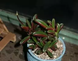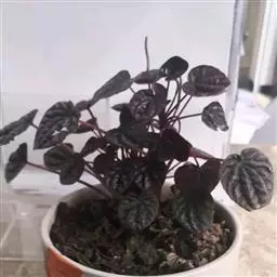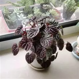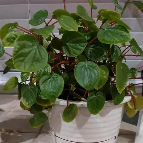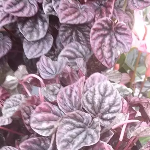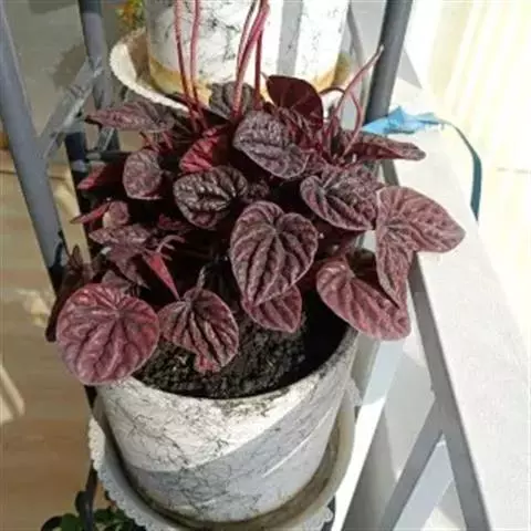 红背椒草 又名雪椒草、赤背椒草,为斧叶椒草椒草的相似种。植株矮小,易分枝,直立生长,高5厘米至8厘米,肉质茎暗红色。叶片肥厚多肉,对生或轮生,具细短柄,叶片椭圆形,两侧向上翻,使叶面中间形成一浅沟,背面有龙骨状突起,叶面暗绿色,有光亮,稍呈透明状,叶背则为暗红色。穗状花序,小花绿色,春夏季节开放。