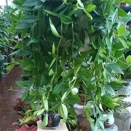 多年生常绿草本。株高25cm,冠径25cm。叶革质,淡绿色。穗状花序,白色。茎直立性,单叶生有柄,叶倒卵形、全缘,长、宽约3-6公分,叶面光滑浓绿,叶质肥厚。