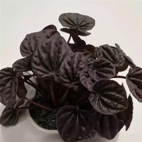 皱叶椒草 又名皱叶豆瓣绿。植株无茎或茎极短,叶片呈小型丛生状,具红褐色或红、粉红色长柄,叶片心形,长3厘米至4厘米,深绿至墨绿色,叶面有皱褶,整个叶面呈波浪状起伏,皱褶的基部几乎呈黑色。穗状花序白色或淡绿色,长短不等,春末至初秋开放。本种另有小叶品种,其叶片较小;花叶变种,新叶有黄白色斑点或斑纹。