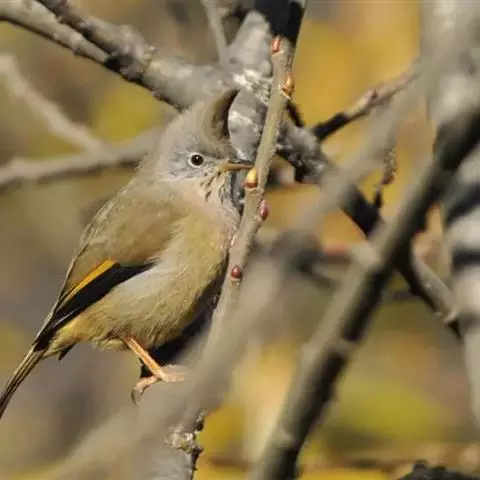 习性: 斑喉希鹛 繁殖期间成对活动,其他季节多成3~5只或10余只的小群,有时亦与其他希鹛混群。常在高大乔木树冠层枝叶间、有时也在森林中下层和林下及林缘地区高的灌木枝头活动和觅食。性活泼,行动敏捷,常频繁的在树枝叶间跳跃或飞翔,不时发出“久~违,久~违”的叫声。