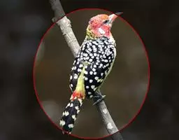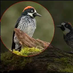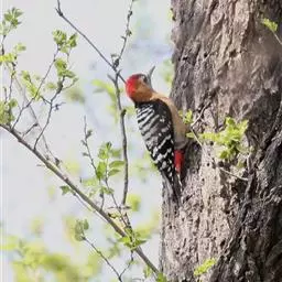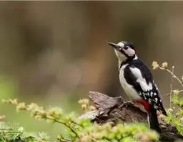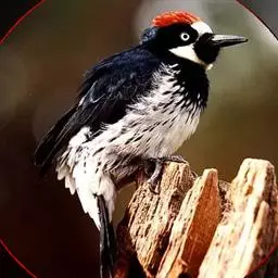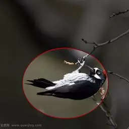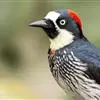 橡树啄木鸟:体长20-23厘米。前额灰黄色,头顶、后颈红色。喉下部、腰和腹部白色,…