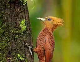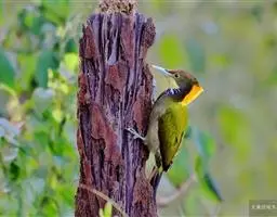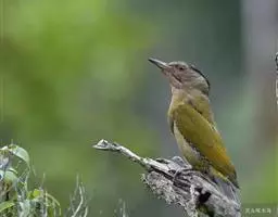 绿啄木鸟是所有啄木鸟中最常见、最普通的一类。鴷形目,啄木鸟科,绿啄木鸟属 (Picus)。雄鸟前头有红斑,雌鸟没有。春天来到,树林里响起一片尖锐而生硬的叫声:“提亚卡干,提亚卡干,人们很远地就能听到,它们特别是在一冲一歇、一起一落地飞行着的时候这样叫着。主要在南方生殖繁衍。 嗜吃蚂蚁及其他昆虫,对农林业颇有益处