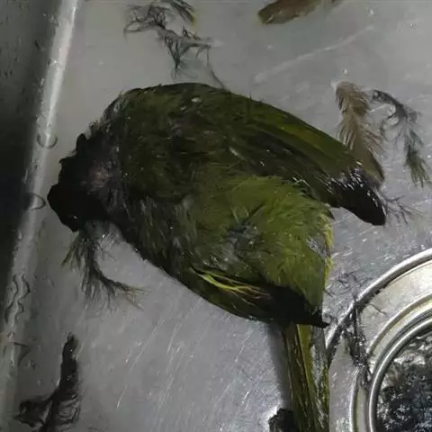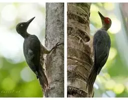 雌性成鸟 与雄鸟相似,但额和头顶无血红色,代之则是黑色,其余的则完全相同。