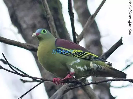 黄腹绿鸠,Treron waalia ,脊索动物门、鸟纲、鸽形目、鸠鸽科、绿鸠属,…