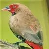 尾稍呈楔形:第三枚飞羽内翈中部有凹入处;尾羽无黑色次端斑。雄鸟翅及背有紫红色块斑;头顶橙红色(金古铜色)。