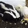 貂熊每胎产崽2~5只,刚出生的小貂熊只有橘子大小,全身覆盖着灰白色的毛,只能闭着眼睛吃和睡。小貂熊要满月之后眼睛才能完全睁开,同时毛色慢慢变成成年貂熊的棕褐色。貂熊的哺乳期只有3个月,但有意思的是,5个月大的小貂熊偶尔也会趁母亲不注意的时候偷偷吮上一口奶。