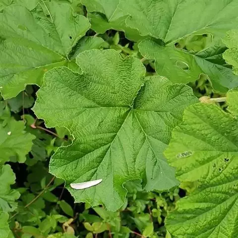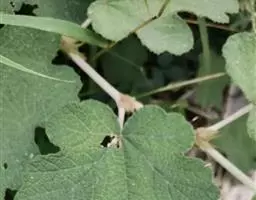 单叶宽卵形,稀长圆状卵形,长5-10(12)厘米,宽a1-8厘米,顶端渐尖,基部心形,上面疏生柔毛或沿叶脉有柔毛,下面被疏柔毛,沿叶脉毛较密,中脉上常疏生小皮刺,边缘明显3-5裂或呈波状,有细锯齿;叶柄长2-4(5)厘米,具细柔毛或近于无毛,有稀疏小皮刺;托叶离生,线状深裂,有细柔毛或近无毛,常脱落。