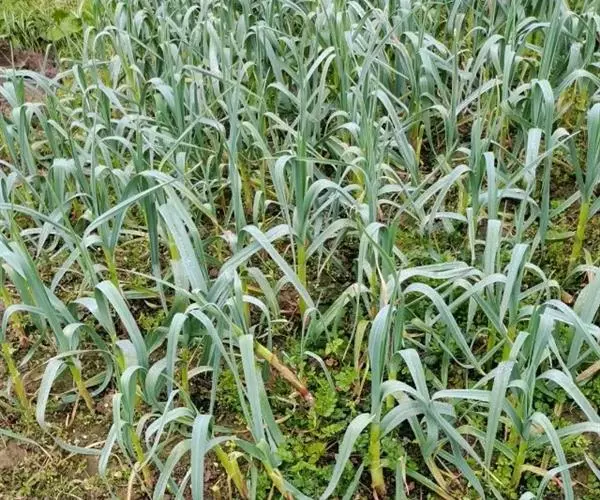 3. 田间管理,根据大蒜生长需求及时的浇水追肥,中耕除草,在生长期及时喷施壮茎灵,同时还应在孕薹期喷施地果壮蒂灵使地下果营养运输导管变粗,提高地果膨大活力,增强植株抗病力,提高大蒜产量。