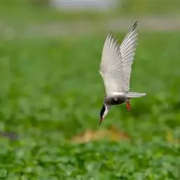 鸥嘴噪鸥,中型水禽,体长31~39厘米。夏羽额、头顶、枕和头的两侧从眼和耳羽以上黑色。背、肩、腰和…