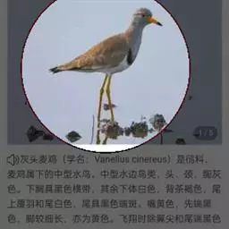 灰头麦鸡是鸻形目鸻科麦鸡属鸟类,繁殖期头、颈及胸灰色;胸部和腹部之间有黑色胸带分隔;背部及两翼大部分覆羽褐色;腹部和腰部白色;尾羽基部及边缘白色,近末端有黑色斑块。非繁殖期头颈部染褐色,颏及喉部白色,胸带不明显。初级飞羽黑色,其余飞羽及与之相邻的部分覆羽白色;虹膜红褐色,眼圈黄色;嘴尖段黑色,后段黄色;腿和脚黄色。灰头麦鸡分布于欧亚大陆及非洲北部、中南半岛以及太平洋诸岛屿,在中国分布于东南沿海地区。栖息于丘陵、平原地区河流、湖泊和沼泽等水体附近。繁殖期成对活动,其余时间集群活动。主要啄食甲虫、蝗虫、蚱蜢等昆虫,也吃水蛭、螺、蚯蚓、软体动物和植物叶片及种子。繁殖期为5—7月,1年繁殖1窝,每窝产卵4枚。灰头麦鸡被列入中国国家林业局发布的《国家保护的有益的或者有重要经济、科学研究价值的陆生野生动物名录》。