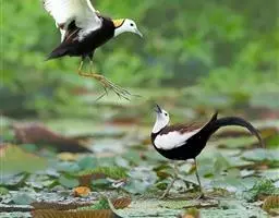 凤头麦鸡:中型涉禽,体长29-34厘米。头顶具细长而稍向前弯的黑色冠羽,像突出于头顶的角,甚为醒目。…