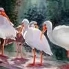 美洲白鹮:是一种大型涉禽。体长56-58厘米,体重750-1050克。头和颈裸出,喙很长,向下弯曲。…