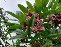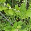 满树星:落叶灌木,高2m。有长枝和短枝,枝灰褐色,长枝被柔毛,并有皮孔。叶互生;叶柄长1-1.2cm,有短毛;叶片薄纸质,倒卵形,长2-8cm,宽1-3cm,先端渐尖,基部楔形,边缘具锯齿,两面有短柔毛,侧脉3-4对,网脉不明显。花序单生长枝或短枝叶腋或鳞片腋内;花白色,有香气,4-5数;雄花序具1-3花,花梗无毛,花萼直径2.5mm,裂片三角形,花瓣圆卵形,雄蕊与花冠等长;雌花序具单花,花梗稍短,花萼、花冠似雄花,子房卵形,柱头厚盘状。果实球形,直径7mm,有网状条纹和槽,内果皮骨质,花期6月,果期7月。