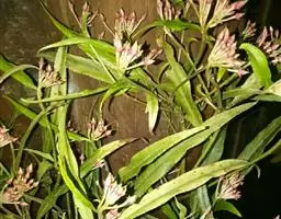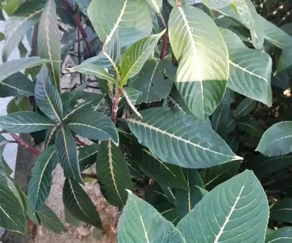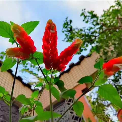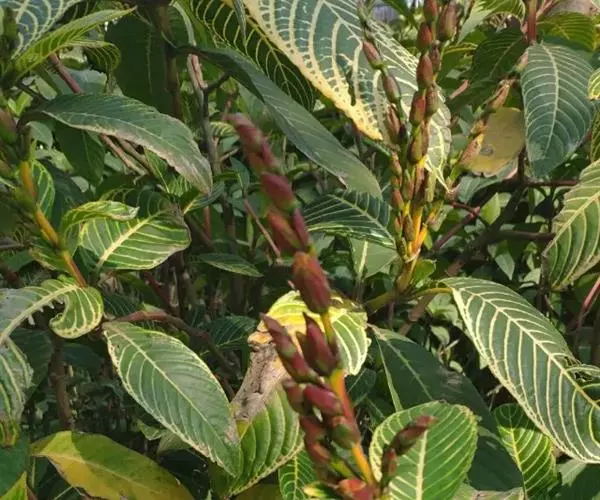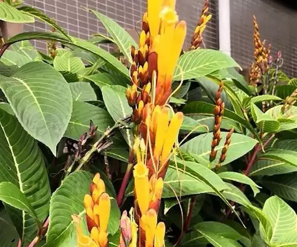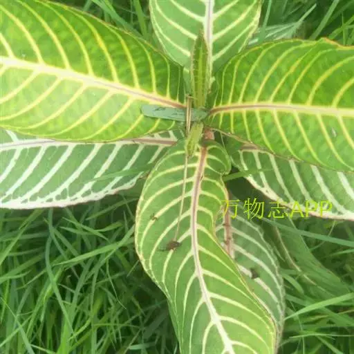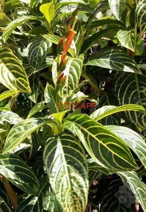 金脉爵床又名金叶木,为爵床科黄脉爵床属多年生常绿观叶植物。株高可达150cm,但盆栽株高一般为50~80cm。叶对生,无叶柄,阔披针形,长15~30cm、宽5~10cm,先端渐尖,基部宽楔形,叶缘有钝锯齿,叶片嫩绿色,叶脉粗壮呈橙黄色。夏秋季开出黄色的花,花为管状,长4~5cm,簇生于短花茎上,每簇 8~10朵,整个花簇为1对鲜红色的苞片包围。