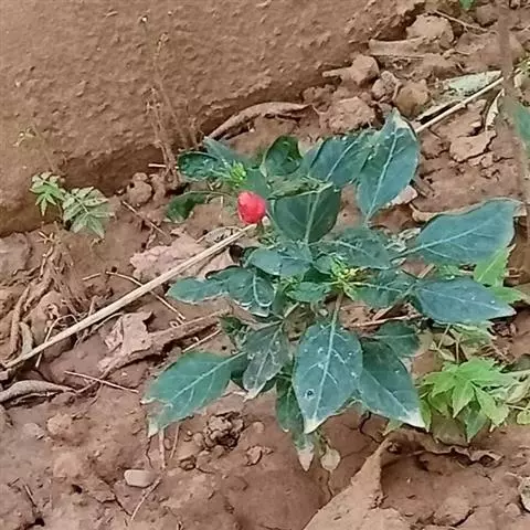 朝天椒茄科辣椒属一年或多年生草本植物;卵形;花通常单只生长于二分叉间,花梗直立,花稍俯垂,…