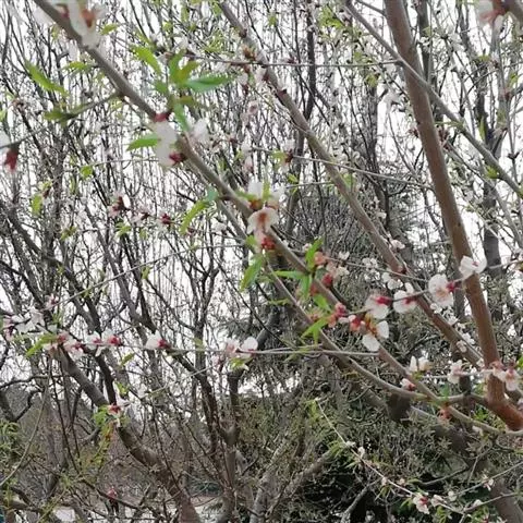 3、花期防霜。4月中至5月上旬,山杏花和幼果易遭晚霜风险,造成减产或绝收,所以要提前做好防霜。一般在山坳里设放烟堆,一亩地可设2-3个,发烟的材料可以就地取材,用柴草和秸杆堆放后,最外面用土壤笼盖,留好出烟口。按照当地气象形象预告,在降霜前焚烧散烟,形成烟幕。