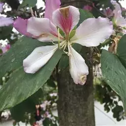 洋紫荆:落叶乔木;树皮暗褐色,近光滑;幼嫩部分常被灰色短柔毛;枝广展,硬而稍呈之字曲折,无毛。叶近…