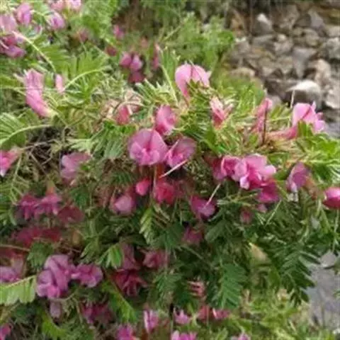 多年生、纤弱多分枝草本,高20-50厘米。无毛,有时有粗厚的根状茎。托叶披针形,长1毫米,无毛,有明显的脉纹,基部具长耳。小叶2枚,卵状长圆形、倒卵形至披针形,长0.8-1.5厘米,有时长达2.5厘米,先端急尖而具短尖头,基部偏斜,两面无毛,背面有褐色或黑色腺点。总状花序腋生,长2-6厘米,花2-6(-10)朵疏生于花序轴上;苞片2,卵形,长6-7(-10)毫米,盾状着生,具缘毛,有明显的纵脉纹5-6条;花萼长3毫米,花冠黄色,旗瓣有纵脉,翼瓣和龙骨瓣均较小,具瓣柄。荚果通常长于苞片,少有短于苞片,有荚节2-6,荚节近圆形,长与宽约2(-4)毫米,表面具明显网脉及针刺。花期4-7月,果期7-9月。