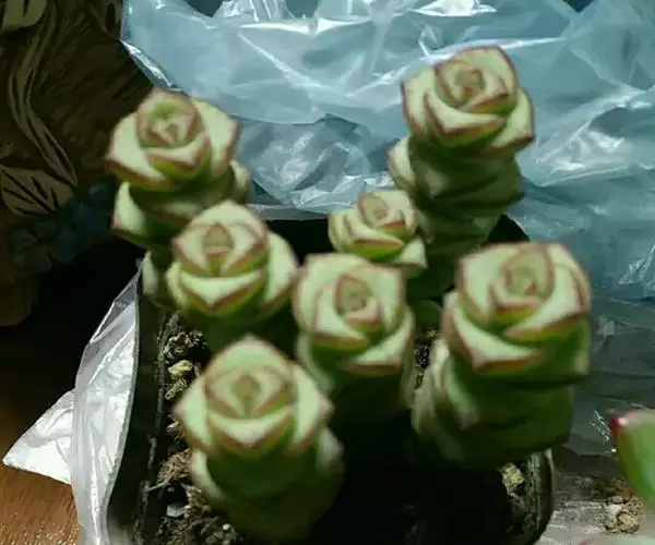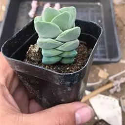 钱串景天(Crassula perforata ssp. kougaensis ),又名串钱景天、星乙女,为景天科青锁龙属多年生肉质植物、也称多浆植物。叶形叶色较美,有一定的观赏价值,可盆栽。