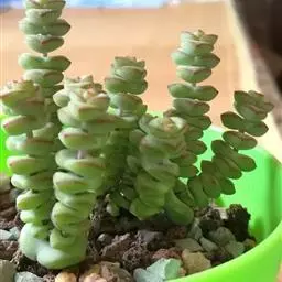 串钱景天,因植株酷似一串串古代的钱币而得名,颇受人们喜爱的小型多肉植物之一。其株型奇特,玲珑可爱,色彩明快悦目,适合用小型工艺盆栽种,也可配以奇石,制成多肉植物小盆景,装饰案头、窗台等处,清新典雅,富有情趣。也可与其他品种的多肉植物合栽于一盆,制成组合盆栽或园艺景箱。