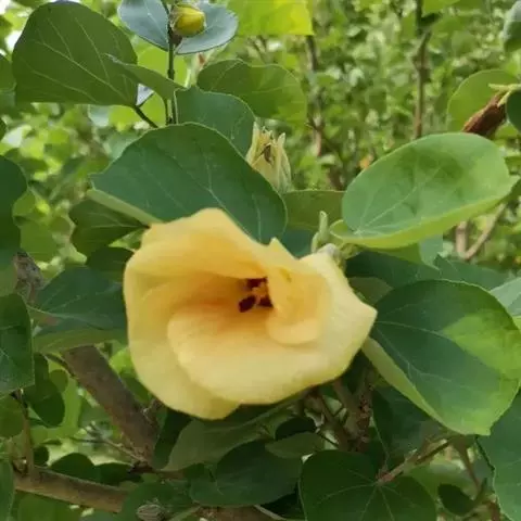 海滨木槿是锦葵科木槿属植物,落叶小乔木,株高3-5米,胸径20厘米,扁球形树冠,枝叶繁盛。…