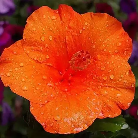 花单生于枝端叶腋间,花梗长4-14毫米,被星状短绒毛;小苞片6-8,线形,长6-15毫米,宽1-2毫米,密被星状疏绒毛;花萼钟形,长14-20毫米,密被星状短绒毛,裂片5,三角形;花钟形,色彩有纯白、淡粉红、淡紫、紫红等,花形呈钟状,有单瓣、复瓣、重瓣几种。直径5-6厘米,花瓣倒卵形,长3.5-4.5厘米,外面疏被纤毛和星状长柔毛;雄蕊柱长约3厘米;花柱枝无毛。