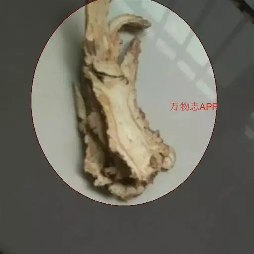 正品药用前胡。其主根呈不规则圆锥形,长3-6厘米,直径1.8-2厘米。表面棕褐色,有纵皱纹,顶端有叶基痕,下部生支根数条,支根长6-9厘米、直径0.5-0.8厘米。表面有纵皱纹及横向皮孔状的疤痕。质较硬易折断,折断面皮部棕褐色,木部黄棕色,也有的断面色较浅。具芳香气但与当归香气不同,味略辛辣。