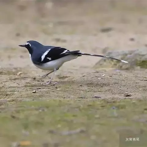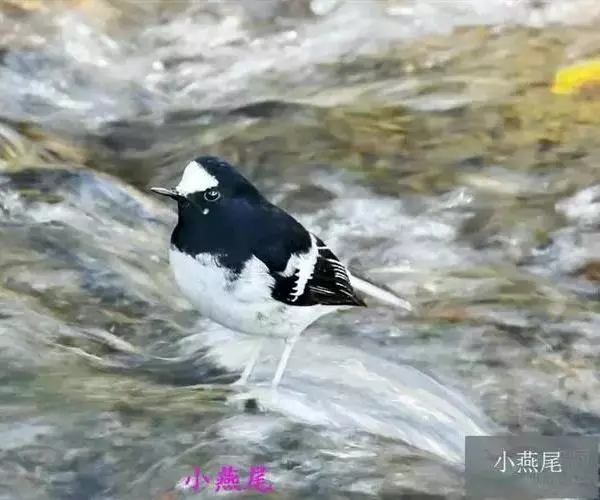 小燕尾(学名:Enicurus scouleri)体长13厘米,尾短,与黑背燕尾色彩相似但尾短而叉浅。其前额白色,翼上白色条带延至下部,且尾开叉,嘴直而壮,嘴须发达;第1枚初级飞羽大约为第2枚初级飞羽长度的一半;尾比翅长,外侧第二对和第三对尾羽最长,最外侧两对尾羽通常为白色,最外侧一对尾羽比邻近的一对外侧尾羽短;跗蹠长而纤细,色甚浅淡。