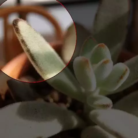 病、虫害及其防治:伽蓝菜属植物常见的虫害为根粉蚧、红蜘蛛和夜蛾类幼虫。根粉蚧主要为害幼苗根部,严重时导致植株萎缩死亡,可用 3%呋喃丹粉剂或 40%乐果乳油 2000 倍液进行防治;红蜘蛛喜吸食植株汁液,造成植株萎缩,可喷施螨类专杀药剂,如 20%三氯杀螨醇乳油 800~1000 倍液、15%哒螨灵 2000 倍液等;夜蛾幼虫则啃食植株生长点,造成植株破顶,对此可使用广谱性杀虫剂进行防治。植株在交易流通过程中很可能会感染病、虫害,故而在种植前,最好检查植株株体及根部是否带虫体或虫卵、或者有病害特征。如有发现,应及时清理,以防传染给其它植株。
