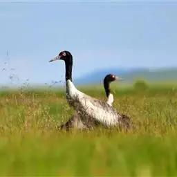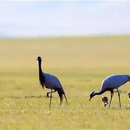 黑颈鹤:是鹤科、鹤属的大型涉禽,体长110-120厘米,体重4-6千克。颈、脚甚长,通体羽毛灰白色,…