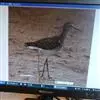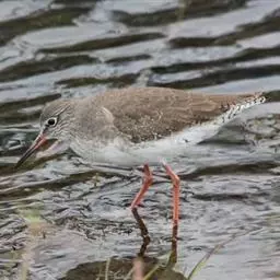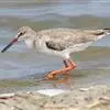 红脚鹬:体长28厘米,上体褐灰,下体白色,胸具褐色纵纹。飞行时腰部白色明显,次级飞羽具明显白色外缘。…