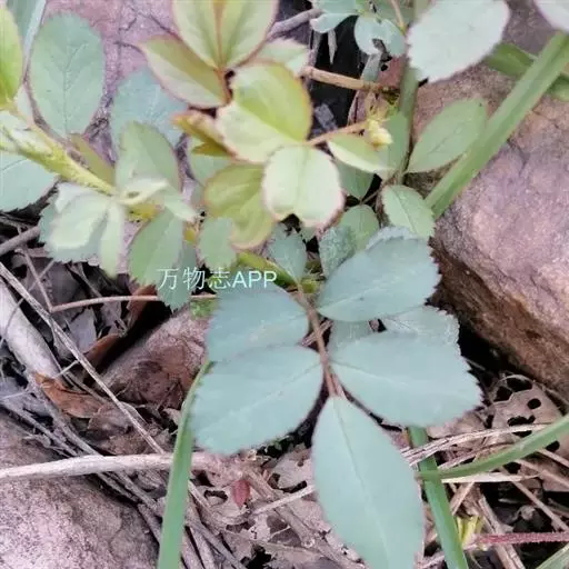 攀援灌木;小枝圆柱形,通常无毛,有短、粗稍弯曲皮束。小叶5-9,近花序的小叶有时3,连叶柄长5-10厘米;小叶片倒卵形、长圆形或卵形,长1.5-5厘米,宽8-28毫米,先端急尖或圆钝,基部近圆形或楔形,边缘有尖锐单锯齿,稀混有重锯齿,上面无毛,下面有柔毛;小叶柄和叶轴有柔毛或无毛,有散生腺毛;托叶篦齿状,大部贴生于叶柄,边缘有或无腺毛。花多朵,排成圆锥状花序,花梗长1.5-2.5厘米,无毛或有腺毛,有时基部有篦齿状小苞片;花直径1.5-2厘米,萼片披针形,有时中部具2个线形裂片,外面无毛,内面有柔毛;花瓣白色,宽倒卵形,先端微凹,基部楔形;花柱结合成束,无毛,比雄蕊稍长。果近球形,直径6-8毫米,红褐色或紫褐色,有光泽,无毛,萼片脱落。