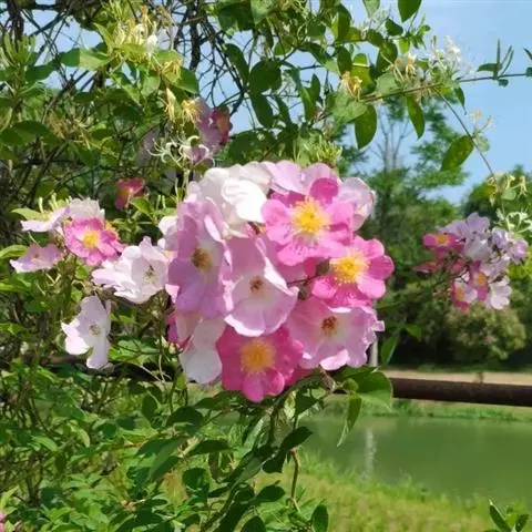 明代顾磷曾歌咏曰:“百丈蔷薇枝,缭绕成洞房。蜜叶翠帷重,浓花红锦张。张著玉局棋,遣此朱夏长。香云落衣袂,一月留余香。”