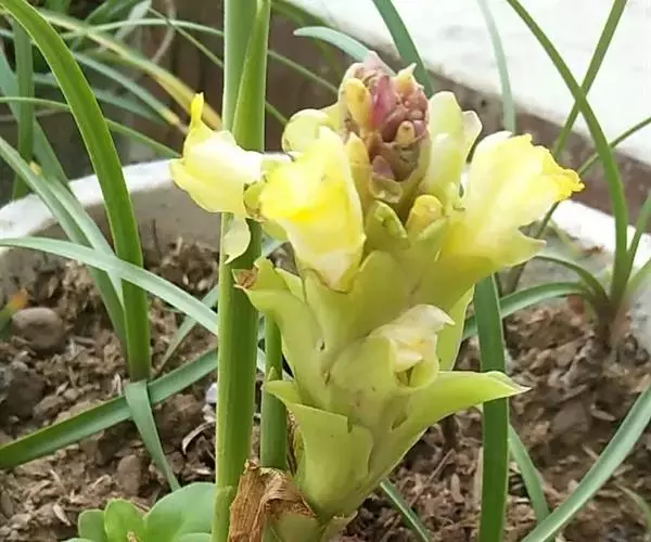 4、绿丝郁金:呈长椭圆形,较粗壮,长1.5~3.5cm,直径1~1.2cm。气微,味淡。