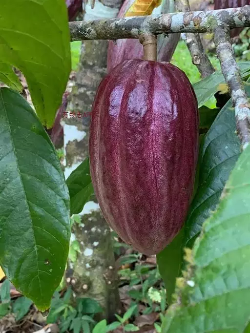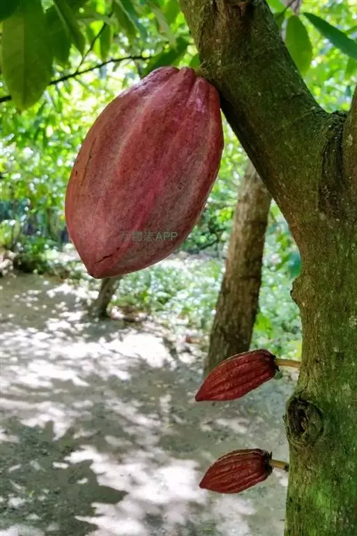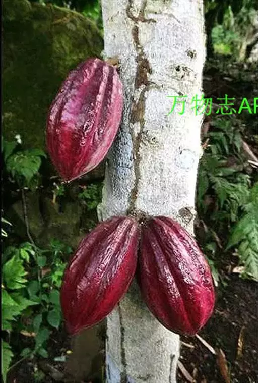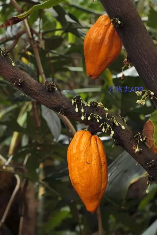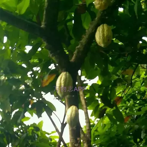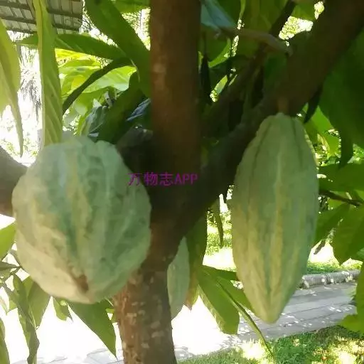 可可树 常绿乔木,高达12米,树冠繁茂;树皮厚,暗灰褐色;嫩枝褐色,被短柔毛。叶具短柄,卵状长椭圆形至倒卵状长椭圆形,长20-30厘米,宽7-10厘米,顶端长渐尖,基部圆形、近心形或钝,两面均无毛或在叶脉上略有稀疏的星状短柔毛;托咔条形,早落。