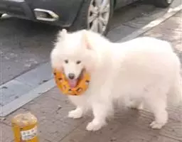 萨摩耶犬(英文:Samoyed),别称萨摩耶,原是西伯利亚的原住民萨摩耶族培育出的犬种,一岁前调皮、灵动。它机警、强壮、灵活、美丽、高贵优雅、乖巧可爱,有着非常引人注目的外表,有“微笑天使”的称号,也有着“微笑天使面孔,捣蛋魔鬼内心”之称。萨摩耶犬的颜色为白色;部分带有很浅的浅棕色、奶酪色、浅棕色。此外其他颜色都属于失格。世界上曾出现过一只灰白色萨摩,FCI承认他是具有纯种血统萨摩耶基因的返祖萨摩,黑色萨摩耶犬极为罕见。